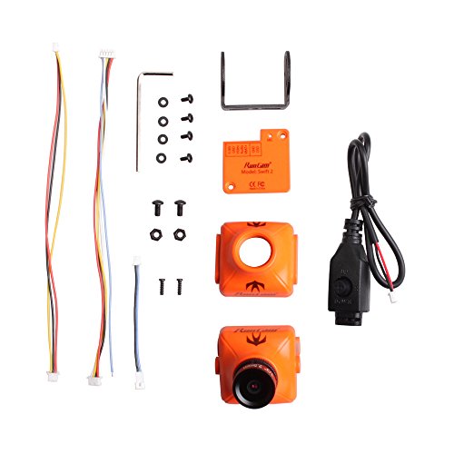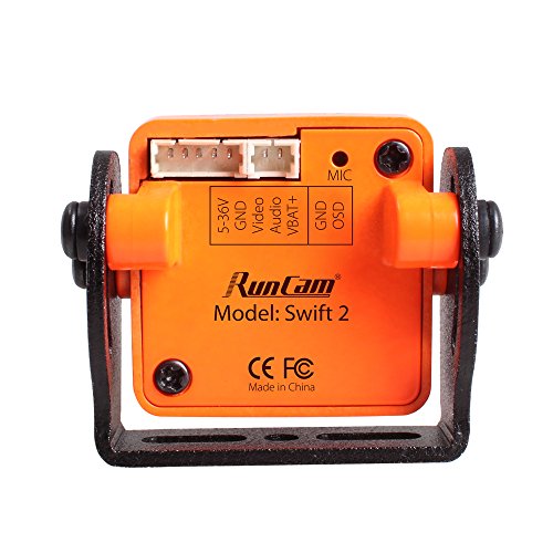 RunCam Swift 2 600TVL CCD FPV Camera Integrated OSD 2.1mm Lens FOV 165 Degree DC 5-36V Support Audio IR Blocked NTSC with Mount for Multicopter (Orange)