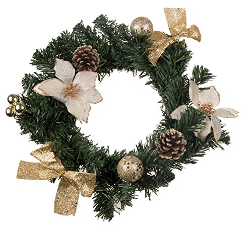 Christmas Wreath with White Poinsettia, Snow Covered Pine Cones, Gold Bows and Ornaments | Perfect for Interior or Exterior Christmas Decor | Hang on Doors, Walls, Stairs and More! | 10”x10”x3”