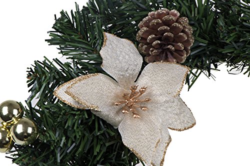 - ADD THAT MAGICAL TOUCH TO YOUR HOME: This wreath is a great universal size and color scheme for all kinds of different decorative themes. Add that magical touch to your home’s Christmas decor with a high quality, durable wreath that shines and glitters wherever you hang it. Create Christmas cheer in your home with beautifully designed decor you’ll want to put up year after year