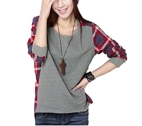 -. Feature : シンプルなグレーとチェック柄の切り替えデザインが可愛いロングTシャツ。 / 前後の丈の違いがとってもオシャレで可愛い!デニムやスキニーに合わせてカッコいい! / ゆったりシルエットで体系カバーも、ゆるくルーズに着こなすのもOK / M:身丈55-62cm バスト102cm 袖長52cm 肩幅38cm / タイトなデザインのため、普段のサイズよりワンサイズ上をお選び下さい