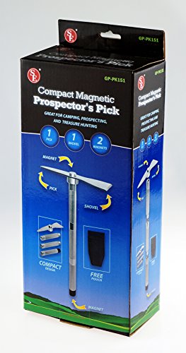 SE GP-PK151 Compact Collapsible Magnetic Prospector’s Pick with Carrying Case, Silver