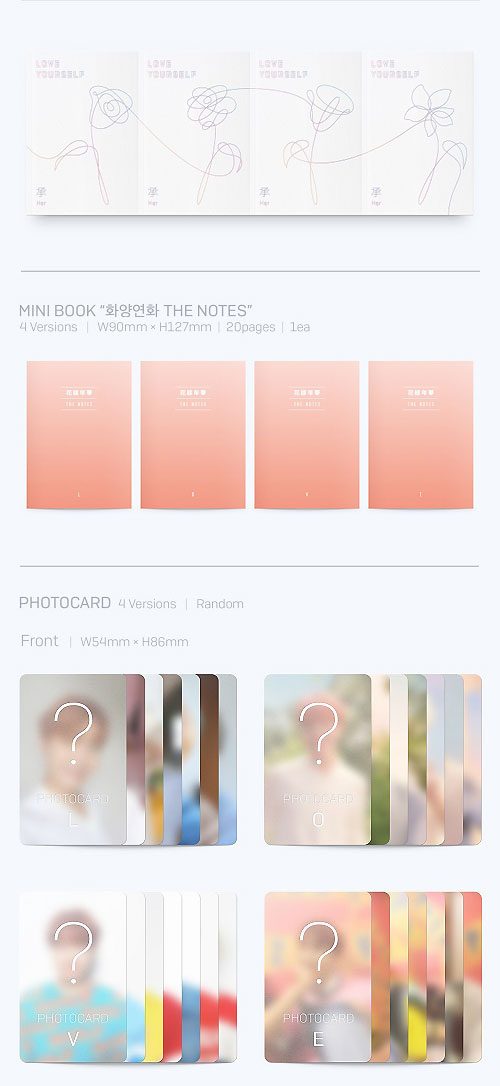 韓国音楽 防弾少年団(BTS) - LOVE YOURSELF 承 ‘HER’ (バージョン4種の中1種選択/CD+フォトブック100P+ミニブック20P+フォトカード1種+ステッカー)+ポスター筒