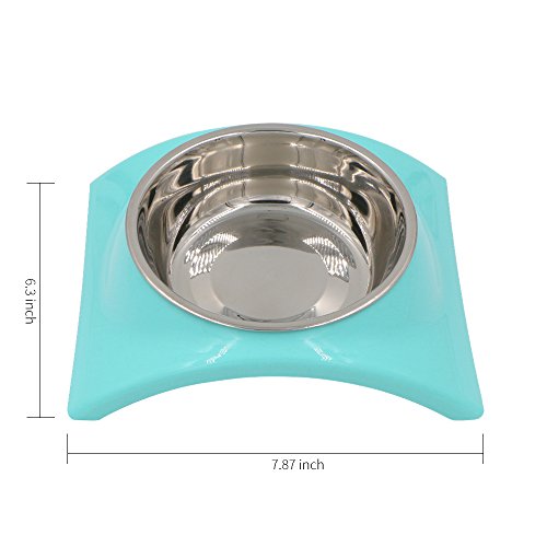 Suitable for Dog and Cat less than 11lbs; Stainless Steel Bowl - 5.3 inches Diameter, 1.6 inches Deep, Holds 12 oz Fluid, about 2 Cup; Stand - Length: 8.5 inches, Width: 7 inches, Height: 2.5 inches