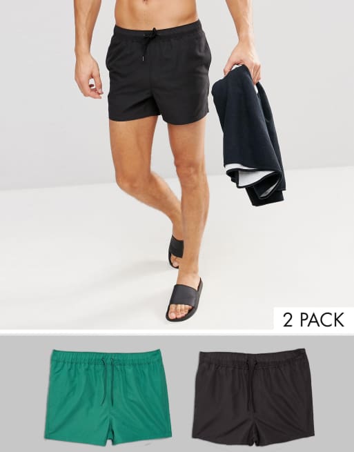ASOS Swim Shorts In Black & Green Short Length 2 Pack SAVE