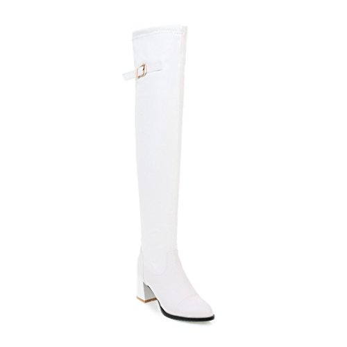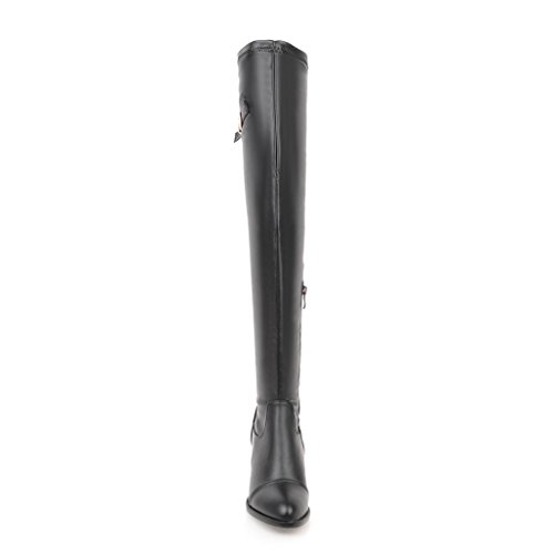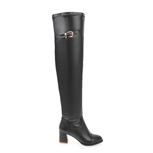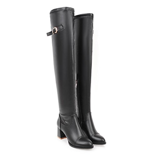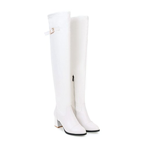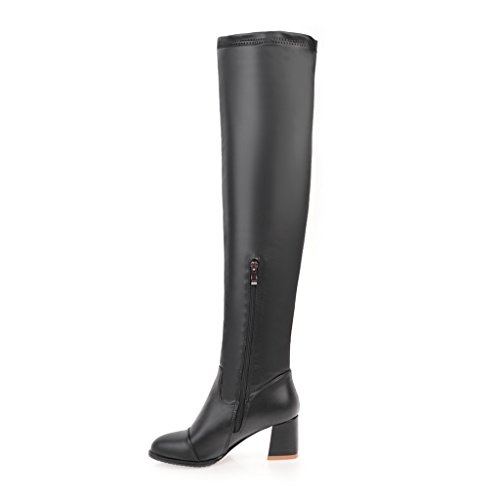 (BalaMasa)/Women's/Boots/DIRECT FROM USA/BalaMasa Womens Kitten-Heels Zipper Solid Above-The-Knee Urethane Boots ABL09638