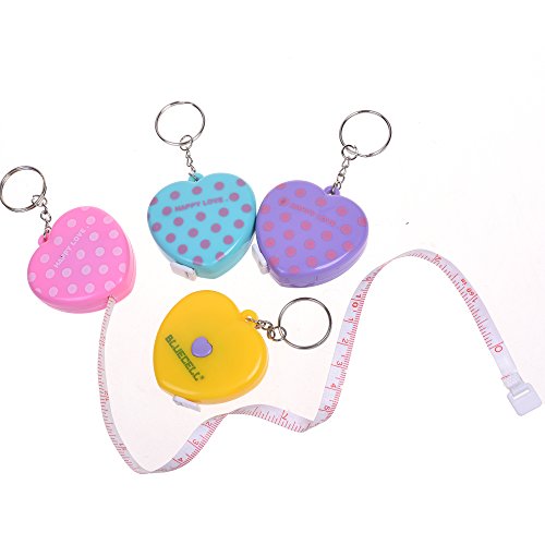 BCP 5 Pieces 60-Inch 1.5 Meter Heart Shape Plastic Push Button Retractable Tape Body Tailor Sewing Measuring Tape with Keychain