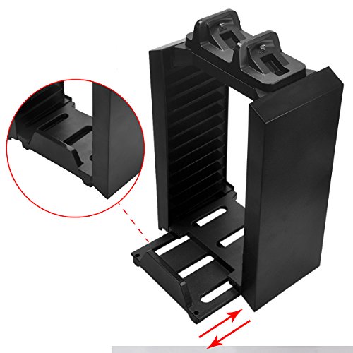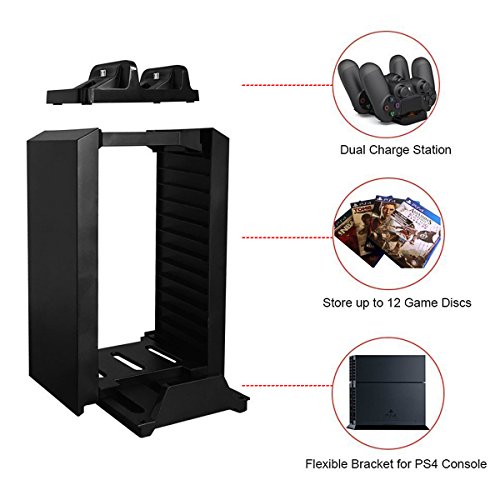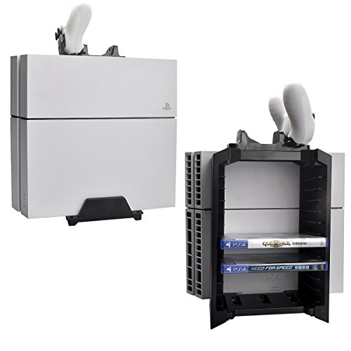 You can store your PS4 games or Blu-Ray movies (up to 12),a convenient charging dock for your official dual shock controllers on top!