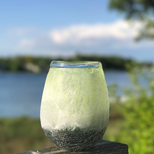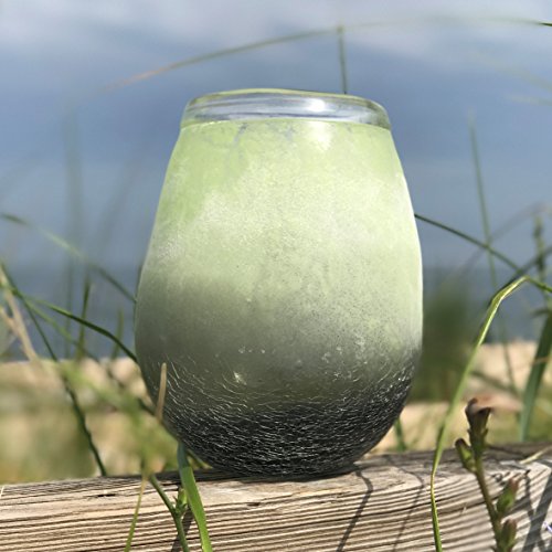 The Beach Chic Ocean Green Hurricane Wind Light, Artisanal Crackle Glass, Hand Blown, Rustic Green and Seafoam White, Approximately 6 Inches Tall, By Whole House Worlds
