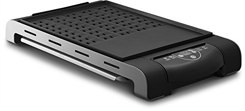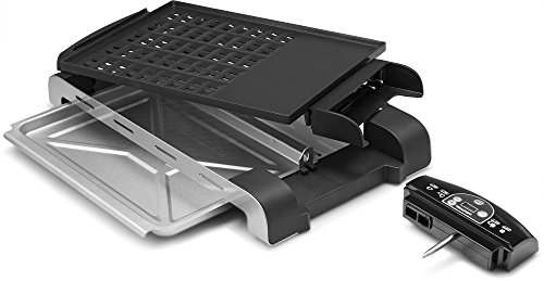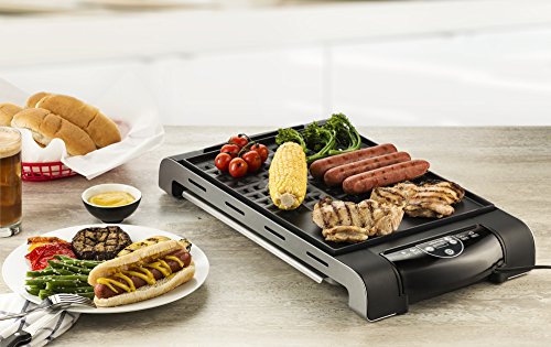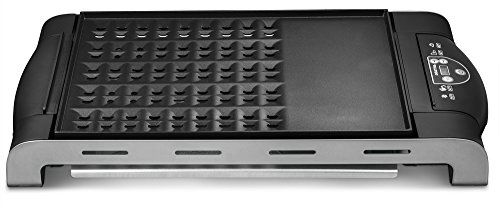 The detachable aluminum die cast grill is non-stick for easy clean up. You can cook a variety of foods at once thanks to the wide grilling space. Cook foods in a variety of styles thanks to the ribbed and flat texture surfaces. Easily adjust temperature with up to 5 temperature settings available to you. The oil drip try prevents messes and makes clean up a breeze.