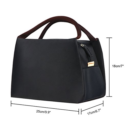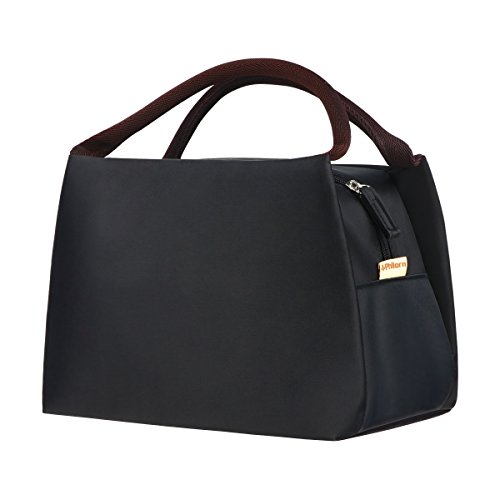Philorn Insulated Lunch Bag Premium Sturdy Oxford Box Tote with Zipper for School and Work, Black