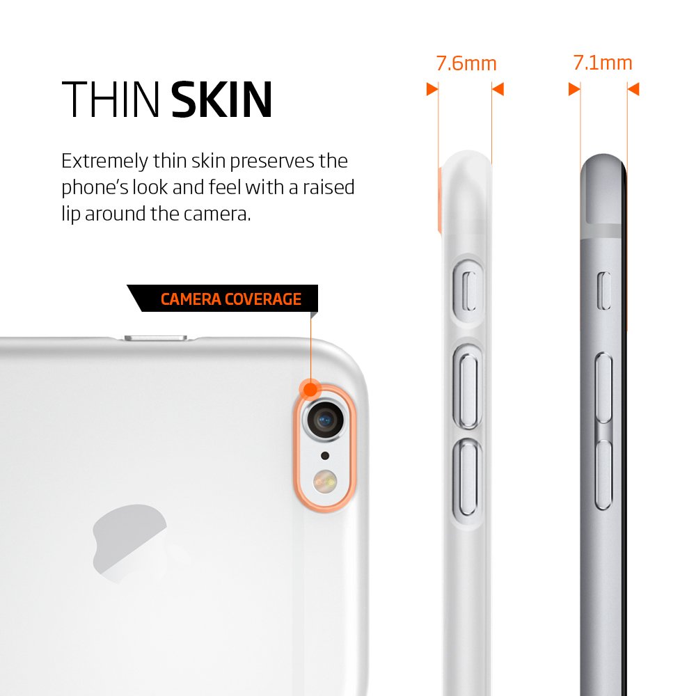 Keep the original shape and size of your iPhone 6s with Spigen's AirSkin cover. Its hard polyproplene material is semi-flexible to fit securely onto the phone for form-fitting perfection that's lightweight and bulk-free. THe frost finish adds a translucent accent for an Air Fit to match any minimalist's style. Compatible with only iPhone 6s (2015).