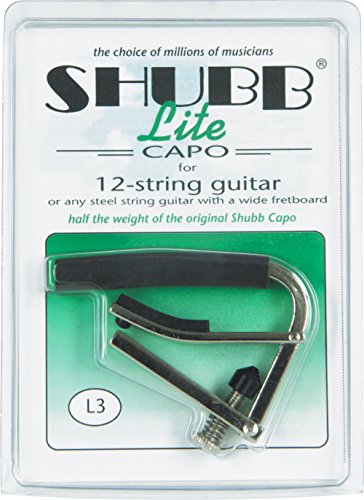 Studio : Shubb Publisher : Shubb Binding : Electronics Product Description The Shubb Lite lightweight aluminum capo is for you if you're into removing mass and reducing the weight of your 12-string guitar. What makes the lightweight Shubb capo so special? For one thing it has an ingenious design: its patented locking action provides unrivaled power, speed, accuracy, and ease of use. One smooth flip of the lever locks the Shubb Lite capo securely in place and removes it just as quickly.Additionally, the Shubb capo doesn't create tuning problems. Its soft, resilient rubber is specially designed to work just like a fingertip, so the capo doesn't bend the strings over the frets. Its closing action is just like your hand, so the Lite capo doesn't pull the string off center. As a result, no retuning is necessary!Is a lightweight capo for you? Maybe, or maybe not. Some people associate a certain amount of heft with quality, and feel that weight is necessary to properly do the job. If that describes you, then a lightweight capo isn't your style. But for years, Shubb has been aware of another school of thought wherein guitarists have been removing mass from their Shubb capos in an attempt to reduce their weight.One thing is certain: if you often carry your capo around in your pocket, your trousers will prefer the Shubb Lite! The Shubb Lite capo for nylon-string guitars is made from aerospace-quality aluminum and is nickel plated. It weighs less than one ounce. Since 1980, Shubb capos have set the standard against which all others can be measured. Shubb capos are the first choice of more than a million musicians worldwide. Serious guitarists will settle for no less.Precisely machined and carefully hand assembled, the Shubb Lite capo is manufactured without compromise. Snapping it solidly onto a guitar neck and then removing it will instantly confirm the capo's reputation of excellence. 0