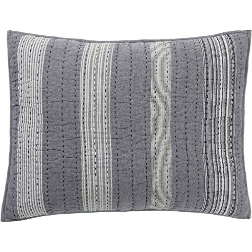 - Solid blue-grey chambray and seersucker striped fabrics add texture to alternating strips