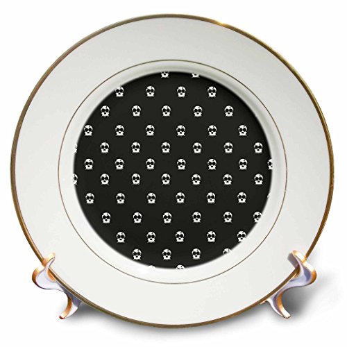 3dRose cp_6164_1 Grey Skulls Print Porcelain Plate, 8-Inch