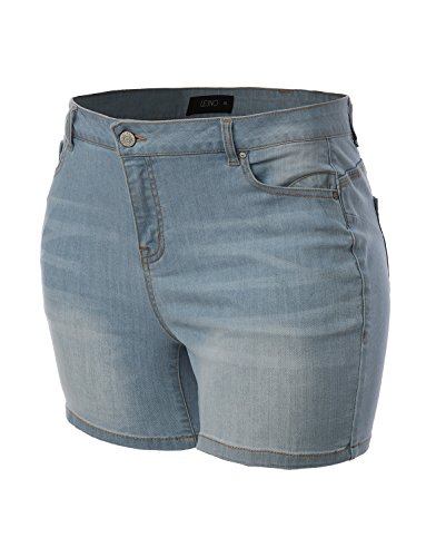 -. Binding : Apparel -. Brand : LE3NO -. Department : womens -. Feature : Super soft, comfy denim material for maximum comfort / Zip up fly / L3NWD2439P: Three button closure / L3NWD2440P: Single button closure / Features 5 pocket style / Belt loops / Enhance your assets / Lifts booty / Machine wash cold / Do not bleach / Iron low / Tumble dry low heat / Please look at the measurements below for guidance -. Model : L3NWD2439P -. ProductGroup : Apparel -. ProductTypeName : SHORTS -. Title : LE3NO Womens Plus Size Fitted High Rise Push Up Denim Jean Shorts