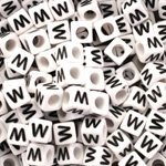 White Plastic Cube Alphabet Beads, Small, 6mm, Letter W, 100 pcs