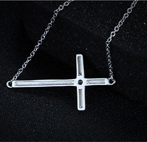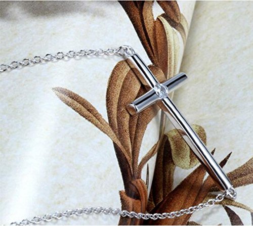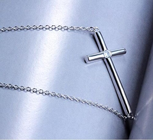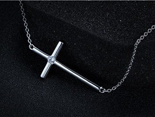 -. Title : Sojewe Women Sterling Silver Sideways Horizontal Cross Necklace Cubic Zirconia on Pendant