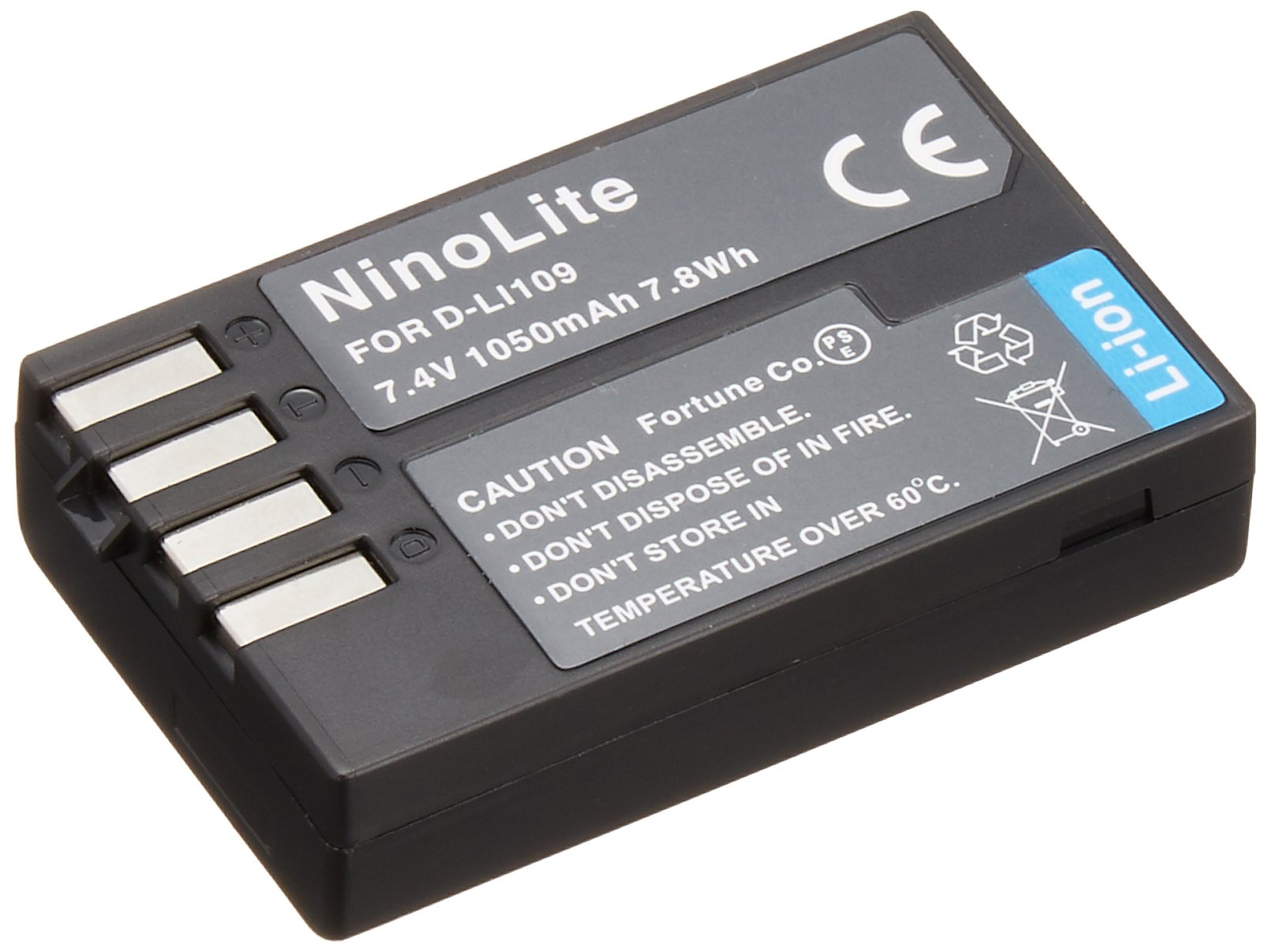 Corresponding Battery: Pentax Pentax D-Li 109 // Li-Ion Lithium Ion 7.4 V, 1050 mAh (remaining amount displayable with camera), 300 or more charge / discharge times