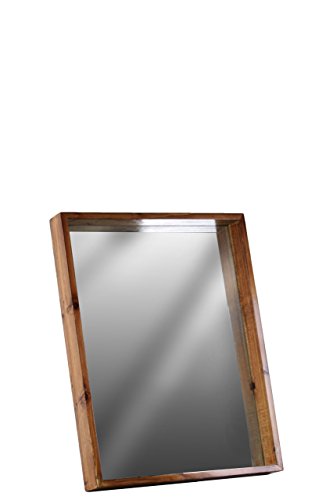Urban Trends Wood Rectangular Wall Mirror with Protruding Frame SM Varnished Wood Finish Brown, Small