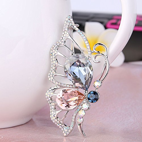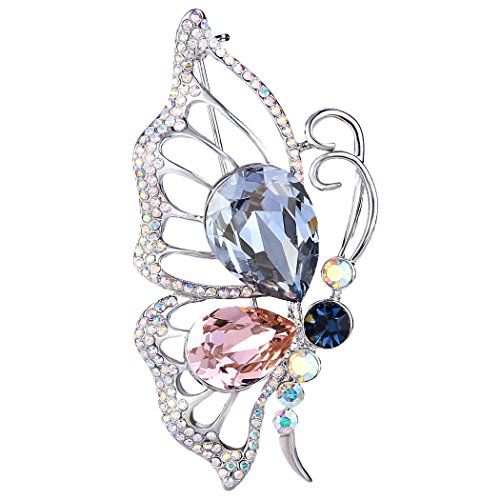 -. Title : EleQueen Women's Silver-tone Flying Butterfly Brooch Pin Multicolor Adorned with Swarovski Crystals