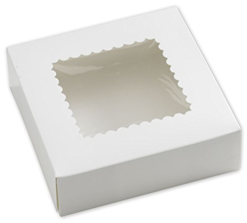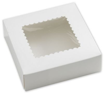 Product Description Our white Windowed Bakery boxes are an ideal way to package your baked goods. Boxes feature a clear acetate window to show off baked goods. 0
