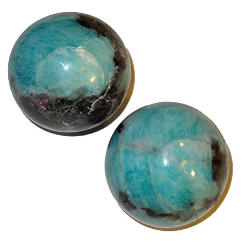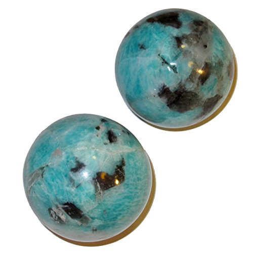 Amazonite Ball 52 Mint Chocolate Chip Pair Fun Energy Healing Meditation Stones 1.8"