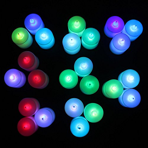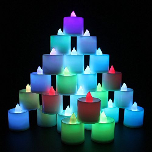ELlight 24 PCS (2 Dozen Pack) Battery Operated Candles Flameless LED Tealight Candles Votive Style Romantic Date, Multi Color Light