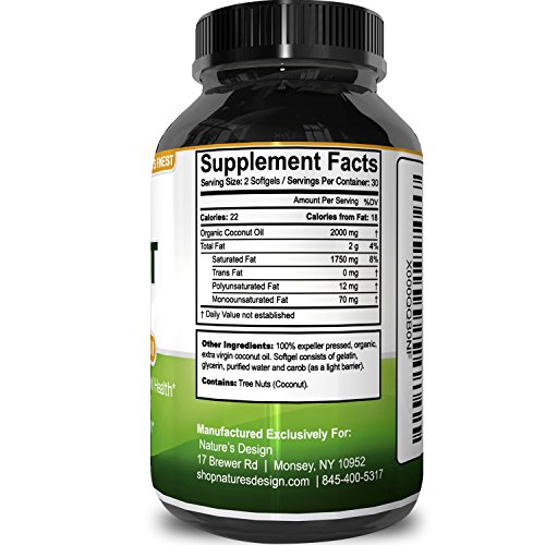 All-natural Coconut Oil - Money-back Guarantee The Natures Design Difference We use only the most pure, most potent and high quality ingredients available in our all-natural dietary supplements. We do this because we want our products to work for you time and again. We want you to be a customer for life! All of our products are manufactured in the U.S.A. under the strictest cGMP standards as defined an overseen by the FDA.