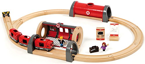 -. Binding : Toy -. Brand : Brio -. EAN : 7312350335132 -. Feature : 20 piece set; light and sounds train engine, two passenger cars with sliding doors, ticket kiosk and Metro map and two passengers / Meticulously detailed Metro Station and separate tunnel section / 8 track sections and special switch section and track end bumper / Battery included (2 x LR44) / For ages 3+ -. IsAdultProduct : 0 -. ItemPartNumber : BRI-33513 -. Label : Brio -. Manufacturer : Brio -. Model : 33513 -. MPN : 33513 -. PackageQuantity : 1 -. PartNumber : 33513 -. ProductGroup : Toy -. ProductTypeName : TOYS_AND_GAMES -. Publisher : Brio -. Studio : Brio -. Title : Schylling Brio Metro Railway Set -. Warranty : No Warranty