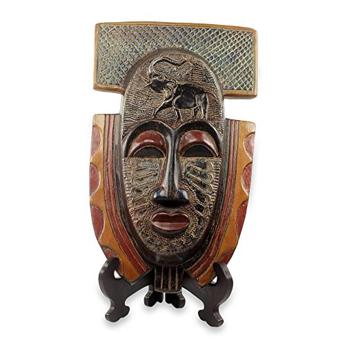 NOVICA 'Royal Elephant' African Wood Mask And Stand