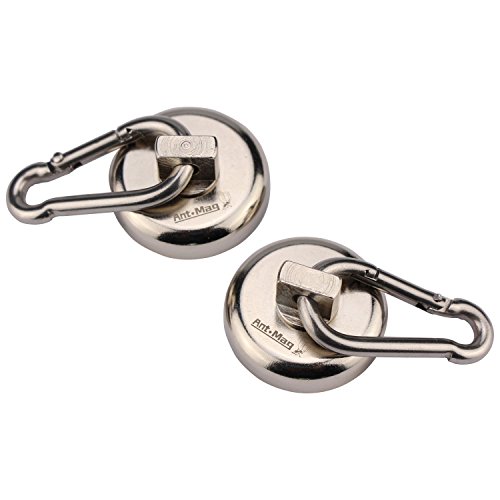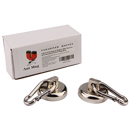 Ant Mag 2 Pack of 60LBS Heavy Duty Neodymium Magnet with Stainless Steel Swiveling Carabiner Snap Hooks