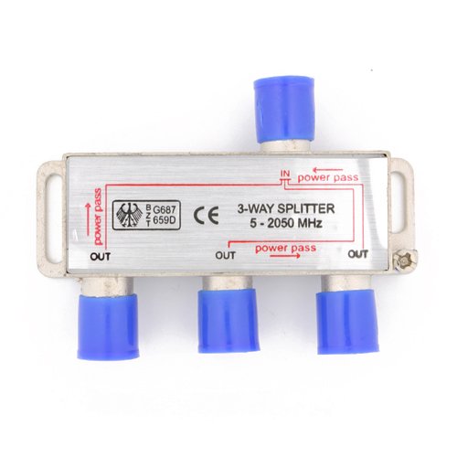 -. Feature : Splits an incoming coaxial signal from cable television (CATV), VCR, satellite receiver, cable box, or antenna into multiple outgoing signals / The splitter is also referred to as coaxial splitter, coax splitter, coax cable splitter, RG6 splitter, RG6 cable splitter, F type splitter, cable TV splitter, TV signal splitter, RF splitter, F pin splitter, coaxial video splitter, and coaxial digital splitter / Introduces -3.5dB Avg signal loss (-3.7dB @ 5-2050 MHz)