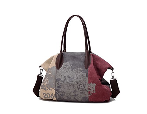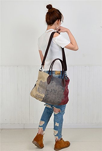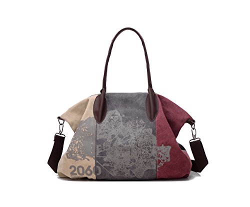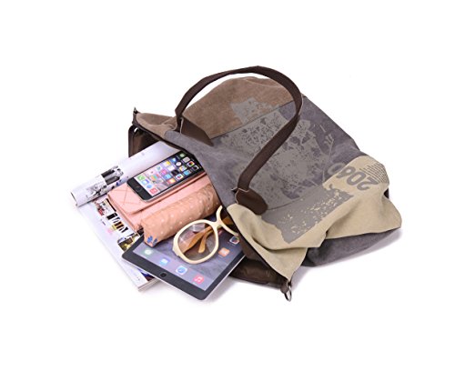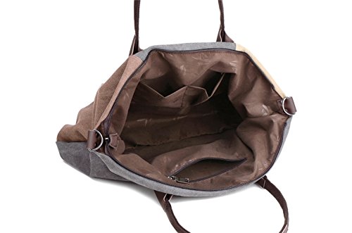 WLE Large Size Canvas Multi Zipper Pocket Purse Simple Retro Style Fashion Pleated Stripe Pieced Tote Bag Shoulder Bag For Women Girls Ladies with Shoulder Strap