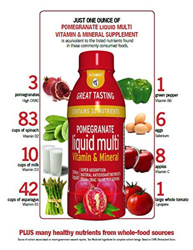 Dr Joyce Conquer, PhD: nutritional sciences professor with over 10 years of experience on clinical trials on dietary supplements developed this formula to bring together the clinically proven benefits of pomegranate with a rich blend of essential vitamins and minerals, in a liquid format for maximum absorption and antioxidant effect. For women, men and children