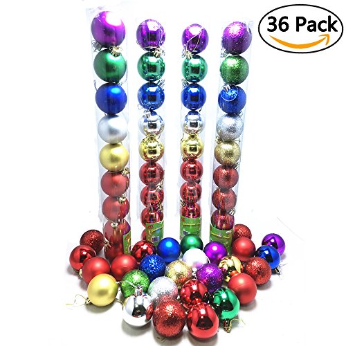 36 Pack 50mm/2 inch Essential Christmas Balls Ornament Xmas Tree, Decoration for Holiday Wedding Party Decoration, Tree Ball with String Pre-Tied, Assorted Color: Red Gold Silver Blue Green Purple
