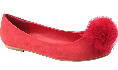 Anna Shoes Women's Pom Pom Slipper Fashion Ballet Flat