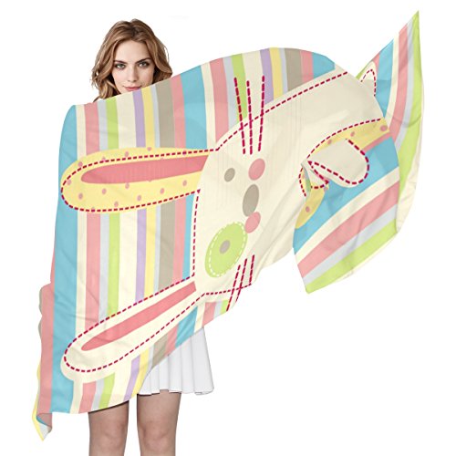 (BEATYG)/Accessories/Cold Weather Accessories/DIRECT FROM USA/Ethel Ernest Womens Silk Scarf Cute Rabbit Infront Stripes Lightweight Shawl Soft Long Scarves