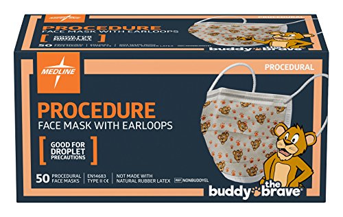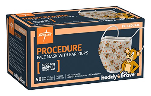 Medline NONBUDDYEL Pediatric Print Procedure Face Mask with Earloops, Polypropylene, Latex, Adult (Pack of 300)