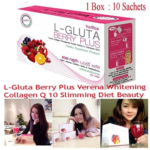 -. Binding : Health and Beauty -. Brand : Verena -. Feature : Drinking fresh juice extract Whitening in 24 hours a day, one bag each day. / Improves food for your skin. Keeps the skin smooth and clear skin as well as the children eat verena Berry Plus every day. / Surface to radiate the aura you all day. Sour and sweet taste, refreshing color to the body. Fat and also Detox detoxification in the body. -. ProductGroup : Health and Beauty -. ProductTypeName : HEALTH_PERSONAL_CARE -. Title : L-gluta Berry Plus Verena Whitening Collagen Detox Detoxification in the Body Drink Q 10 Slimming Diet Beauty Organic 15g./piece Packet of 10x3packs