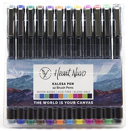 Kalesa Watercolor Brush Marker Pens, 1.5 mm Pointed Felt Nib, Medium Firm Tip, Set of 12 Colors