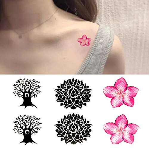 Oottati Small Cute Temporary Tattoo Tree Flower Mandala (2 Sheets)