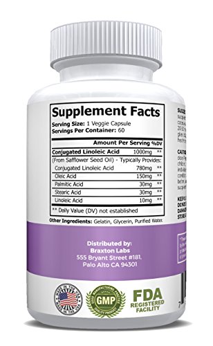 -. Feature : KISS THOSE LOVE HANDLES GOODBYE! Tired of that jiggly fat sitting around your hips, butt and thighs? Braxton Labs is pleased to bring you their all new CLA formula, in a convenient 30-Day supply (2 Capsules a Day). In case you havent read up on CLA, it is a researched and proven means to inhibit the enzyme LPL, which is the culP.R.It to blame for taking fat from your bloodstream and converting it to body fat. CLA inhibits this enzyme and actively encourages your body to burn it's own fat instead! / INCREASED MUSCLE TO FAT RATIO! As CLA works to eliminate your current body fat and block new body fat from forming, it allows for more muscle growth. CLA coupled with healthy diet and exercise can help contribute to a leaner, stronger physique. Whether you are begining your weight loss jouryney now, or running a maintenance supplement, Braxton Labs maximum strength CLA will make a great addition to your supplement arsenal. / STIMULANT FREE! Because CLA is not a stimulant, you wont notice any of the unpleaseant side effects of other weight loss supplements such as caffeine. That means no jitters or crashes - just healthy weight loss! / SATISFACTION IS OUR LEGACY! If you are not 100% satisfied with your purchase of Braxton Labs CLA, simply contact customer service and we will do everything in our power to remedy the situation! / Braxton Labs is a physician owned supplement manufacturer dedicated to providing you with the highest quality lifestyle support products, at the best possible P.R.Ice. We P.R.Ide ourselves on natural ingredients, USA manufacturing, and customer service. Stay on the lookout for more products from Braxton Labs that fit your lifestyle, as the whole line is being introduced to Amazon shortly!