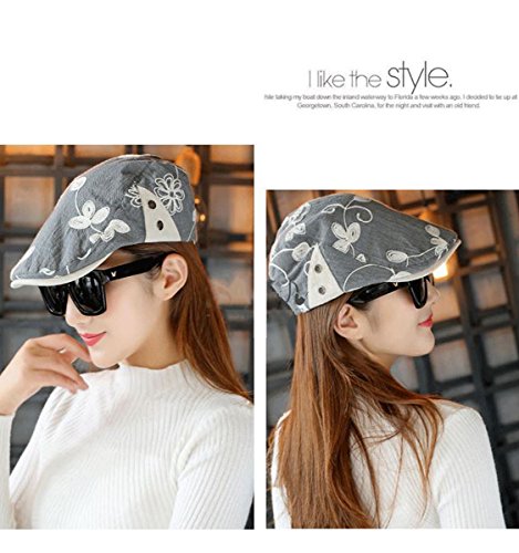 Studio : Clecibor Publisher : Clecibor Binding : Apparel Product Description Floral Embroidery Flat Top Beret Adjustable French Style Painters Hat Cap Size information: 56-59cm, adjustable size, one size fits most Features: elegant floral embroidery design soft cotton blend material breathable holes classic brim fashion street style lightweight enough to make you feel free for all day along nice gifts for your friends and family