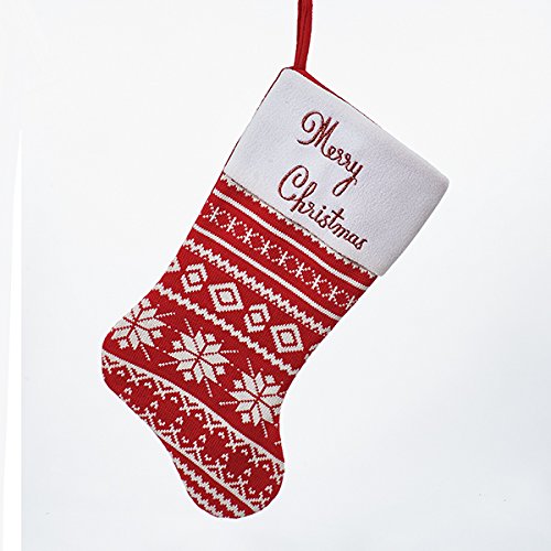 Kurt Adler Red And White Knitted Snowflake Pattern With Fleece Cuff And Metallic Embroidery Christmas Stocking