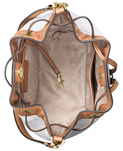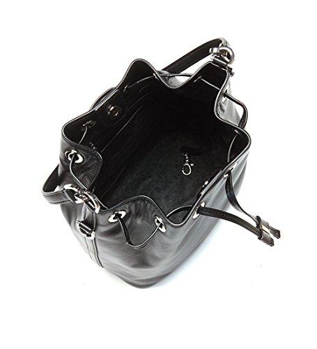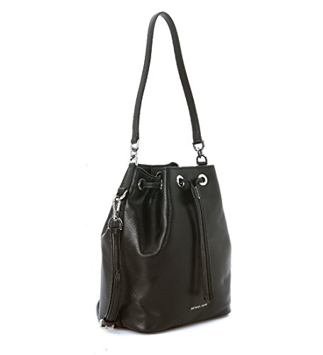 -. Brand : Michael Kors -. Color : Black -. Department : women's -. Feature : Butter calf degrade leather; lining: polyester / Interior features lining, 1 zip pocket, 2 slip pockets and key clip / Exterior features gold-tone hardware and 1 back slip pocket / 11"L single handle; 19-3/4" to 22" adjustable strap / Large sized bag; 12"W x 11"H x 5-1/4"D -. Model : 30S6SDJM3L -. ProductGroup : Shoes -. ProductTypeName : HANDBAG -. Size : Large -. Title : MICHAEL Michael Kors Dottie Large Bucket Bag