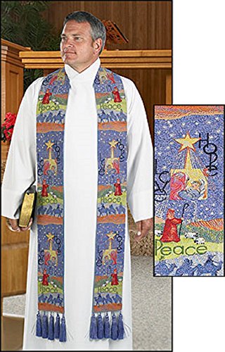 Studio : AT001 Publisher : AT001 Binding : Jewelry Product Description The Story of Christmas stole has events encompassing the birth of our Lord woven into a fine tapestry and is finished with fine polyester tassels. The stole may be worn during the Advent and Christmas Seasons. This stole is a must for children's liturgies. Exclusive design to Autom Woven back Reinforced stitching on all seams Fine polyester tassels 110" L with 4" tassels -- ⓒ2009 Michelle Palmer -- Polyester -- 110" L w/ tassels 0