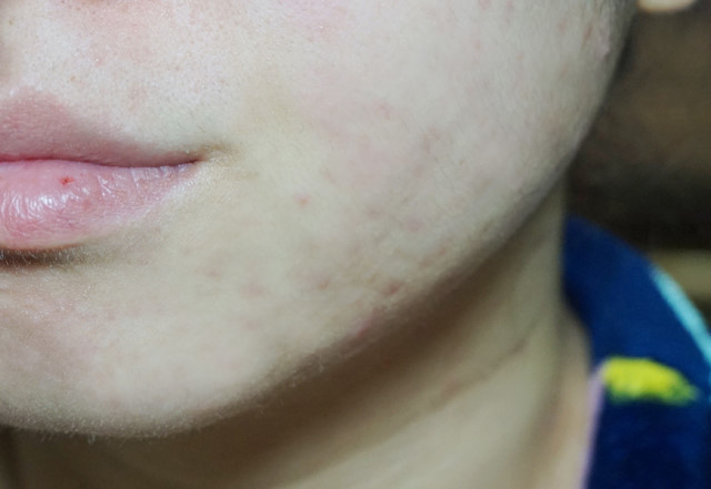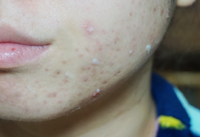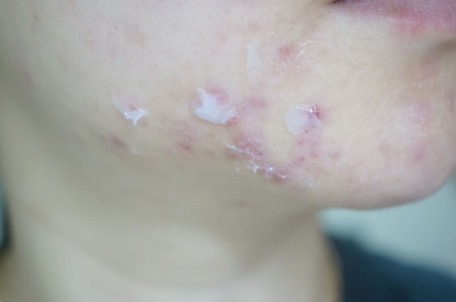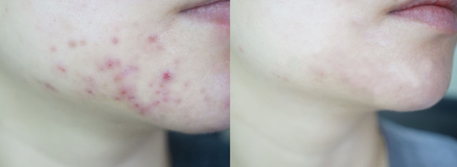 Just applied the blue ointment for a week. The acnes and scars on the face are disappeared.