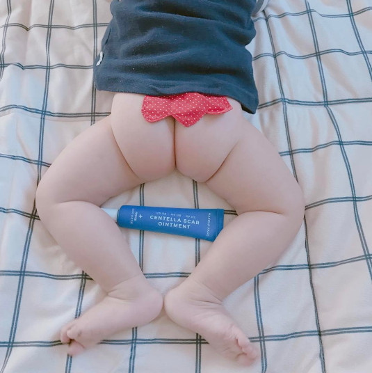 The irritation from acne + scars + the scars on sensitive baby skin. =can solve the problems with blue ointment