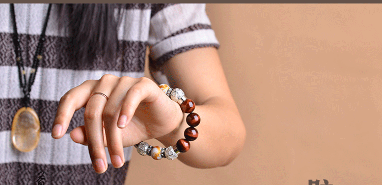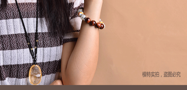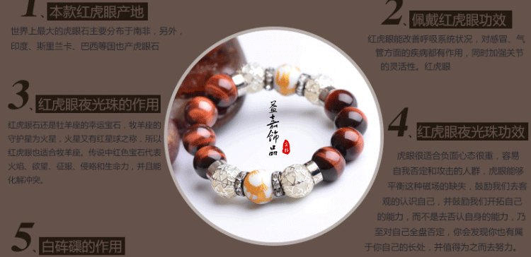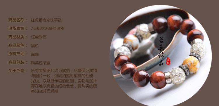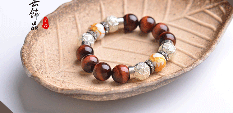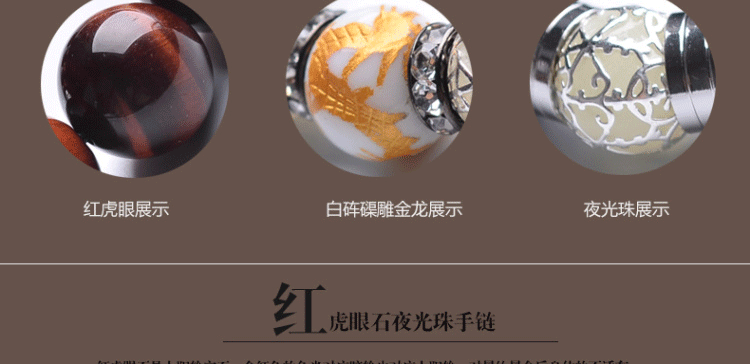 休闲时尚男士手链红虎眼石新潮原创 金龙夜光手串手链