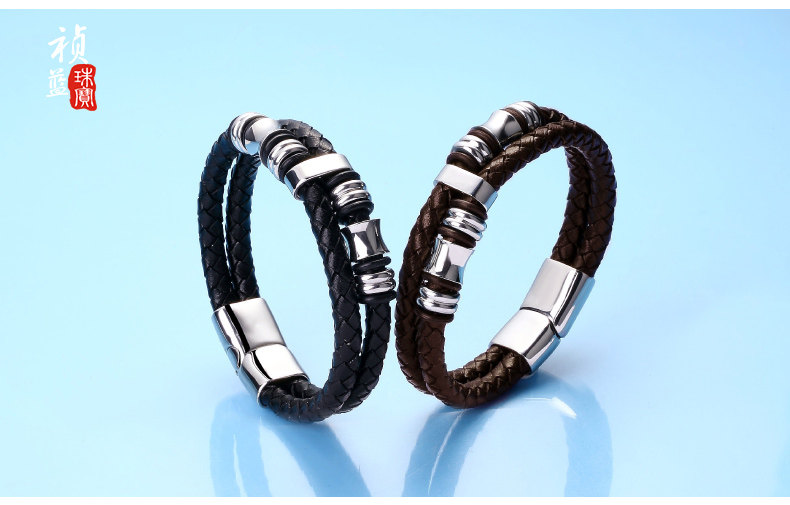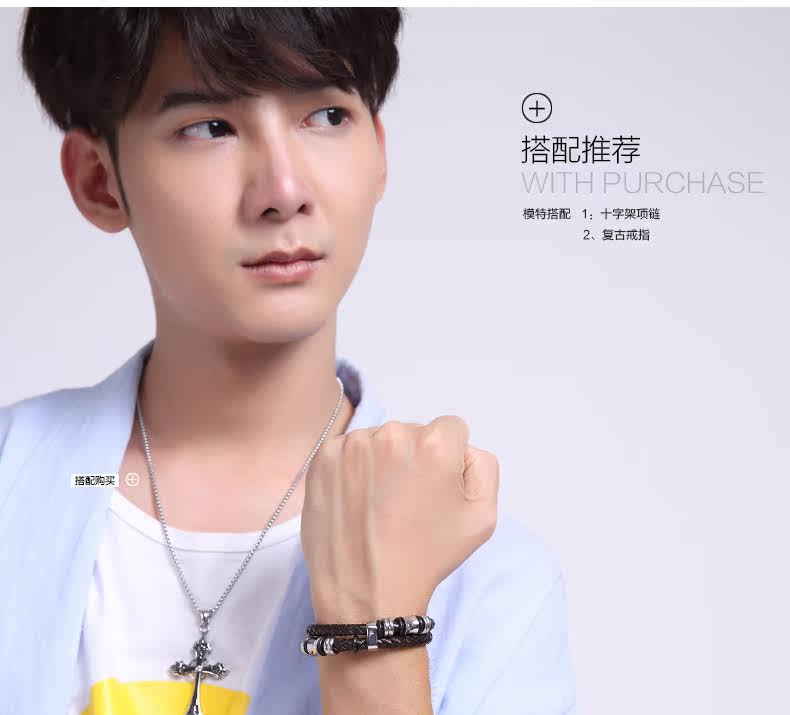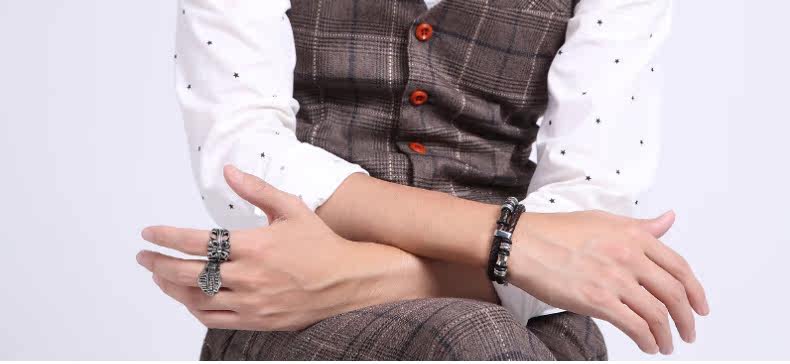 男士真皮手链日韩国韩版时尚手工编织皮绳 个性男式潮手环配饰品?